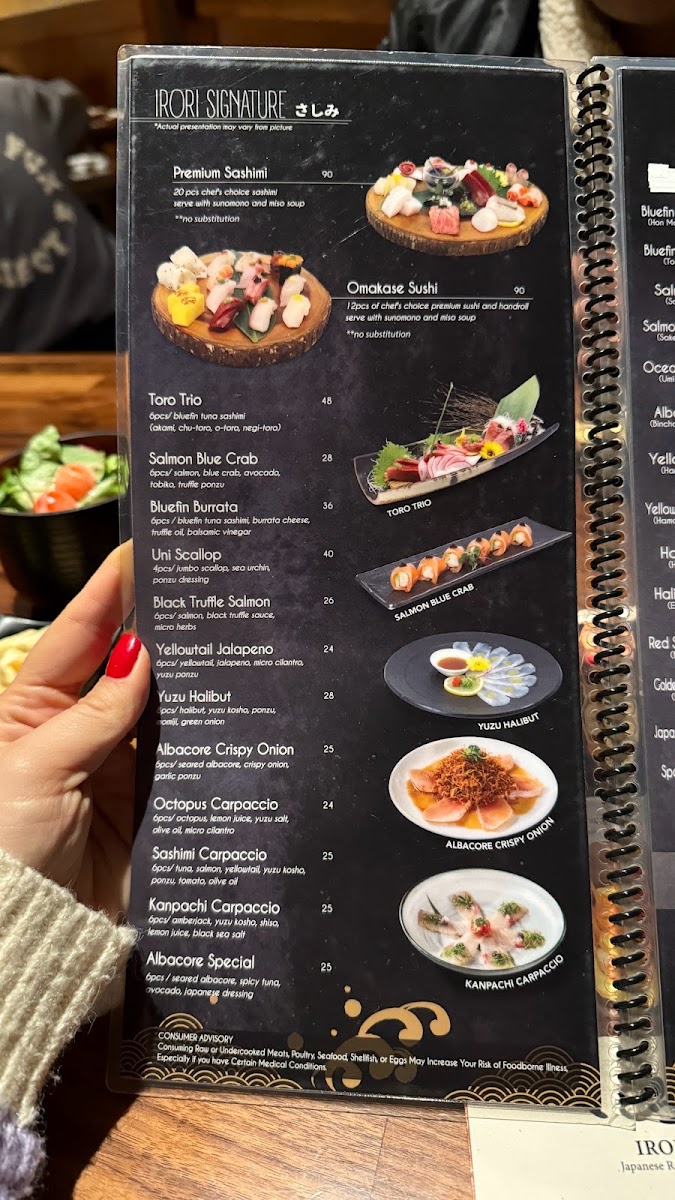Dining at Irori Sushi is more than a meal; it’s a sensory journey. The intimate setting, with traditional floor seating and shoes off custom, grounds you in a peaceful vibe that complements the impeccable sushi craftsmanship.